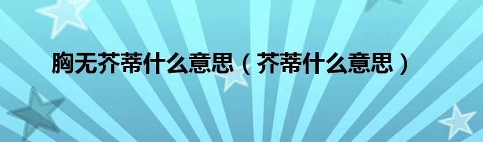 以上就是【胸无芥蒂什么意思,芥蒂什么意思】相关内容。