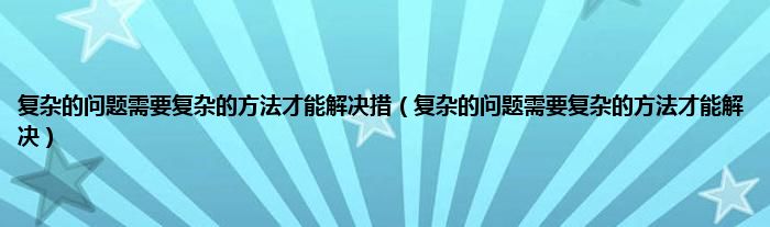 以上就是【复杂的问题需要复杂的方法才能解决措,复杂的问题需要复杂的方法才能解决】相关内容。