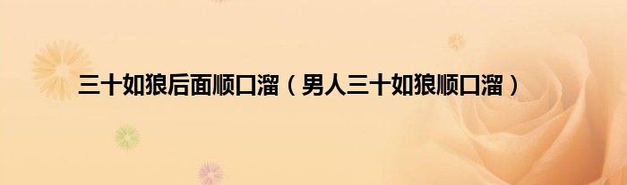 大家好,小问来为大家解答以上问题。三十如狼后面顺口溜,男人三十如狼顺口溜这个很多人还不知道,现在让我们一起来看看吧!