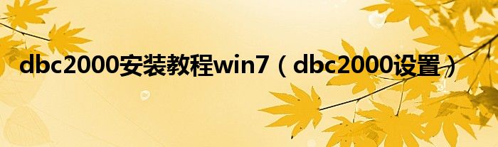 大家好,小问来为大家解答以上问题。dbc2000安装教程win7,dbc2000设置这个很多人还不知道,现在让我们一起来看看吧!