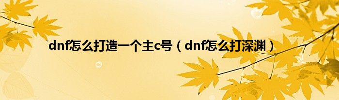 以上就是【dnf怎么打造一个主c号,dnf怎么打深渊】相关内容。