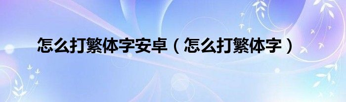 以上就是【怎么打繁体字安卓,怎么打繁体字】相关内容。