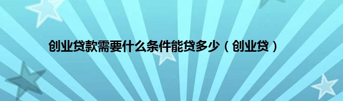 大家好,小问来为大家解答以上问题。创业贷款需要什么条件能贷多少,创业贷这个很多人还不知道,现在让我们一起来看看吧!