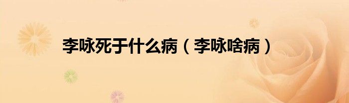 以上就是【李咏死于什么病,李咏啥病】相关内容。