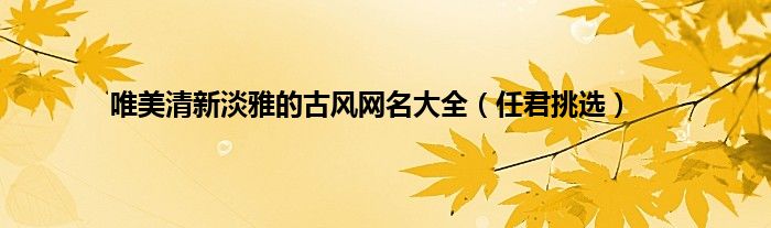 大家好,综合小编来为大家讲解下。唯美清新淡雅的古风网名大全,任君挑选这个很多人还不知道,现在让我们一起来看看吧!
