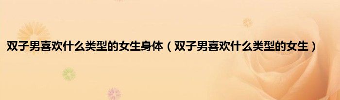 大家好,小问来为大家解答以上问题。双子男喜欢什么类型的女生身体,双子男喜欢什么类型的女生这个很多人还不知道,现在让我们一起来看看吧!