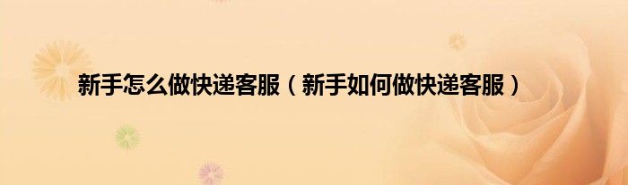 以上就是【新手怎么做快递客服,新手如何做快递客服】相关内容。