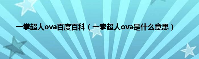 大家好,小问来为大家解答以上问题。一拳超人ova百度百科,一拳超人ova是什么意思这个很多人还不知道,现在让我们一起来看看吧!