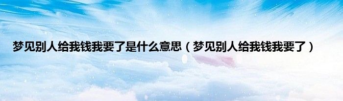 大家好,小问来为大家解答以上问题。梦见别人给我钱我要了是什么意思,梦见别人给我钱我要了这个很多人还不知道,现在让我们一起来看看吧!
