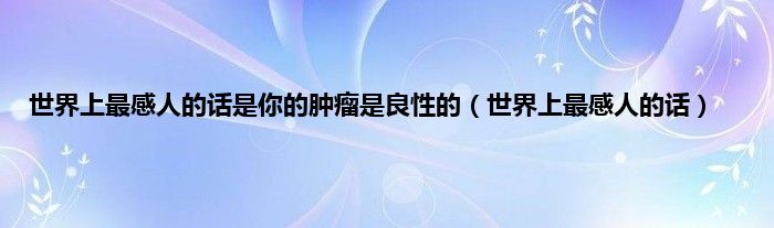以上就是【世界上最感人的话是你的肿瘤是良性的,世界上最感人的话】相关内容。
