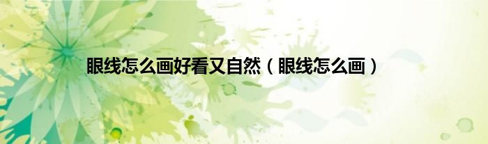 大家好,小问来为大家解答以上问题。眼线怎么画好看又自然,眼线怎么画这个很多人还不知道,现在让我们一起来看看吧!