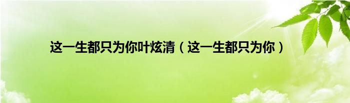 大家好,小问来为大家解答以上问题。这一生都只为你叶炫清,这一生都只为你这个很多人还不知道,现在让我们一起来看看吧!