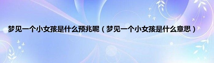 大家好,综合小编来为大家讲解下。梦见一个小女孩是什么预兆呢,梦见一个小女孩是什么意思这个很多人还不知道,现在让我们一起来看看吧!