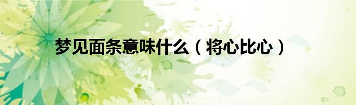 大家好,综合小编来为大家讲解下。梦见面条意味什么,将心比心这个很多人还不知道,现在让我们一起来看看吧!