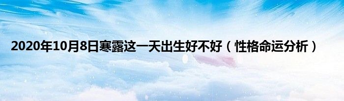 大家好,综合小编来为大家讲解下。2020年10月8日寒露这一天出生好不好,性格命运分析这个很多人还不知道,现在让我们一起来看看吧!
