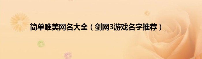 大家好,综合小编来为大家讲解下。简单唯美网名大全,剑网3游戏名字推荐这个很多人还不知道,现在让我们一起来看看吧!