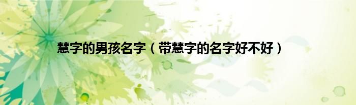 大家好,综合小编来为大家讲解下。慧字的男孩名字,带慧字的名字好不好这个很多人还不知道,现在让我们一起来看看吧!