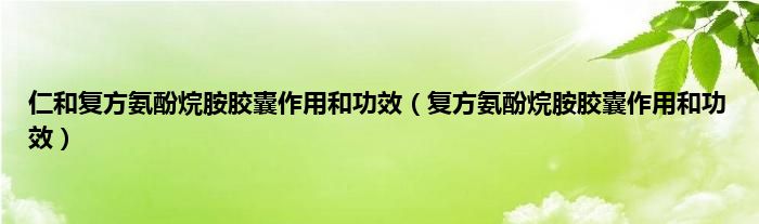 本文,仁和复方氨酚烷胺胶囊作用和功效,复方氨酚烷胺胶囊作用和功效到此就分享完毕,希望对大家有所帮助。