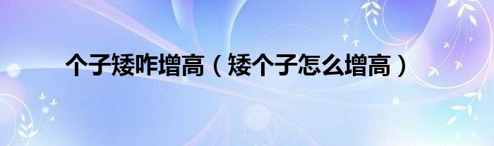 个子矮咋增高(矮个子怎么增高)