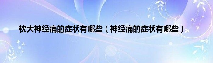 本文,枕大神经痛的症状有哪些,神经痛的症状有哪些到此就分享完毕,希望对大家有所帮助。