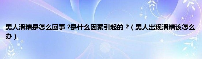 本文,男人滑精是怎么回事 ?是什么因素引起的 ?,男人出现滑精该怎么办到此就分享完毕,希望对大家有所帮助。