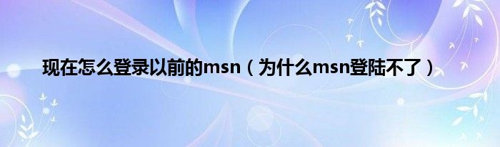 以上就是【现在怎么登录以前的msn,为什么msn登陆不了】相关内容。