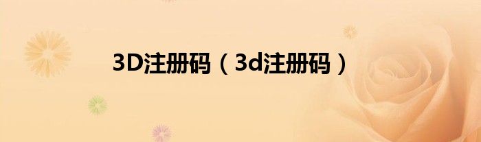 大家好,小问来为大家解答以上问题。3D注册码,3d注册码这个很多人还不知道,现在让我们一起来看看吧!