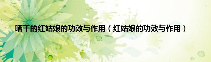 本文,晒干的红姑娘的功效与作用,红姑娘的功效与作用到此就分享完毕,希望对大家有所帮助。
