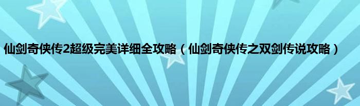 大家好,小问来为大家解答以上问题。仙剑奇侠传2超级完美详细全攻略,仙剑奇侠传之双剑传说攻略这个很多人还不知道,现在让我们一起来看看吧!