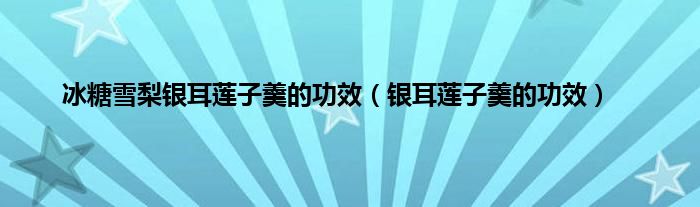 大家好,冰糖雪梨银耳莲子羹的功效,银耳莲子羹的功效很多人还不知道,现在让我们一起来看看吧!