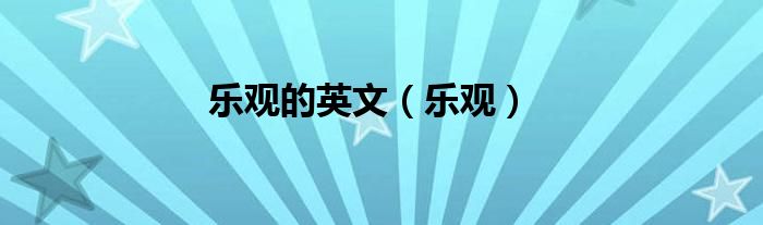 大家好,小问来为大家解答以上问题。乐观的英文,乐观这个很多人还不知道,现在让我们一起来看看吧!