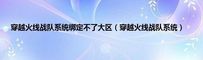 以上就是【穿越火线战队系统绑定不了大区,穿越火线战队系统】相关内容。