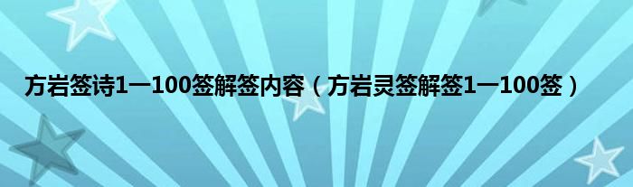 方岩签诗1一100签解签内容(方岩灵签解签1一100签)