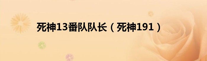 大家好,小问来为大家解答以上问题。死神13番队队长,死神191这个很多人还不知道,现在让我们一起来看看吧!