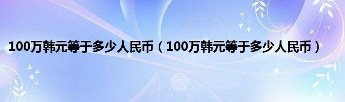 100万韩元等于多少人民币(100万韩元等于多少人民币)