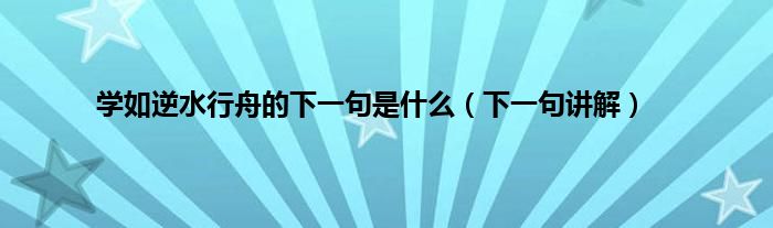 本文,学如逆水行舟的下一句是什么,下一句讲解到此就分享完毕,希望对大家有所帮助。