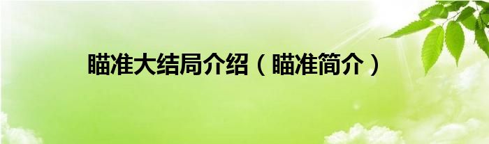 本文,瞄准大结局介绍,瞄准简介到此就分享完毕,希望对大家有所帮助。