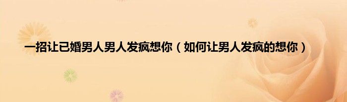本文,一招让已婚男人男人发疯想你,如何让男人发疯的想你到此就分享完毕,希望对大家有所帮助。