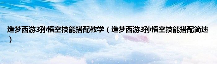 造梦西游3孙悟空技能搭配教学(造梦西游3孙悟空技能搭配简述)