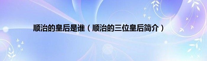 大家好,顺治的皇后是谁,顺治的三位皇后简介很多人还不知道,现在让我们一起来看看吧!